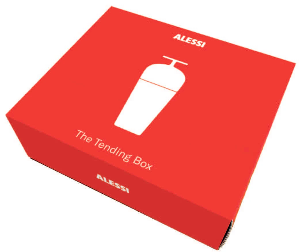 De Alessi The tending box serie kenmerkt zich door zachte lijnen maar strikte ontwerpen en heeft Alessi’s balans tussen vorm en functie. De set is ontstaan uit veel onderzoek naar de bewegingen tijdens het maken van de cocktails en de designs sluiten daar pefect op aan. De serie bestaat uit een cocktailshaker, mixbeker, zeef, maatbekertool, een klassieke cocktail lepel en een mix gereedschap.Â