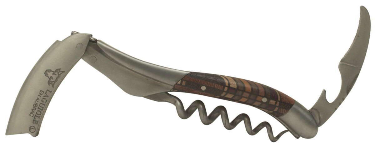 Het Laguiole en Aubrac Orgue – orgel – kelnersmes uit de Puzzle serie is vervaardigd uit roestvrij staal met een heft van verschillende houtsoorten, waaronder ebbenhout, eikenhout, jeneverbeshout, olijfhout, rozenhout en walnoothout. Ingeklapt is het mes 12 cm lang. Het kelnersmes is met de hand gemaakt in Aubrac in Frankrijk en bevat een kurkentrekker, klein kartelmesje en flessenopener. Gebruik het kelnersmes om flessen wijn, bier of champagne te openen.