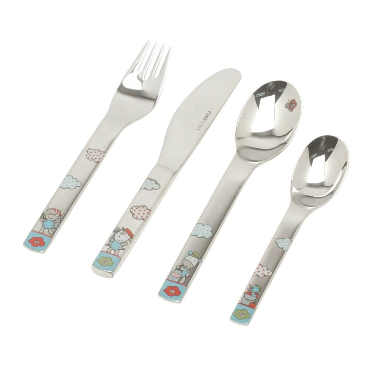 Het Puresigns One Ferme kinderbestek is vervaardigd uit glanzend roestvrij staal. Dit bestek is de kinderversie van het Puresigns One bestek en is voorzien van een boerderij-print.