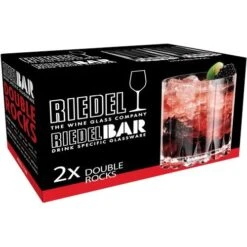 Het Riedel Drink Specific Glassware Double Rocks whiskeyglas is vervaardigd uit kristalglas. Dit Double rocks whiskeyglas heeft een inhoud van 370 ml en een hoogte van 10 cm. Het Double Rocks whiskeyglas is speciaal gemaakt voor grote blokken of een dubbele hoeveelheid ijs. De bovenkant van de verdikte onderrand is de 60ml markering, waarmee perfect een dubbele borrel afgemeten kan worden. Het glas wordt geleverd in een verpaking met 2 stuks.