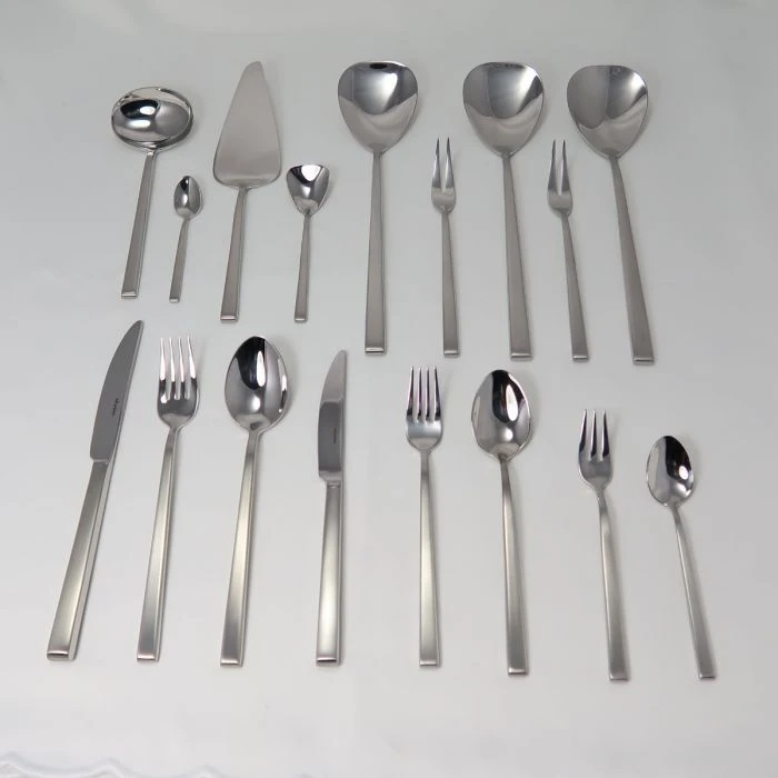 De Cantone serie van het Duitse merk Wilkens is eenvoudig, strak en tijdloos. Dit ontwerp is geïnspireerd op de stijlvolle architectuur uit de Art Deco-periode. Het recht gesneden heft heeft afgeronde hoeken. De bestekset is gemaakt van 18/10 edelstaal. Dit maakt het bestek zeer duurzaam, maar ook praktisch en geschikt voor dagelijks gebruik. Het bestek heeft een mat handvat en een glanzende bovenkant. Deze set bevat bestek voor 6 personen.